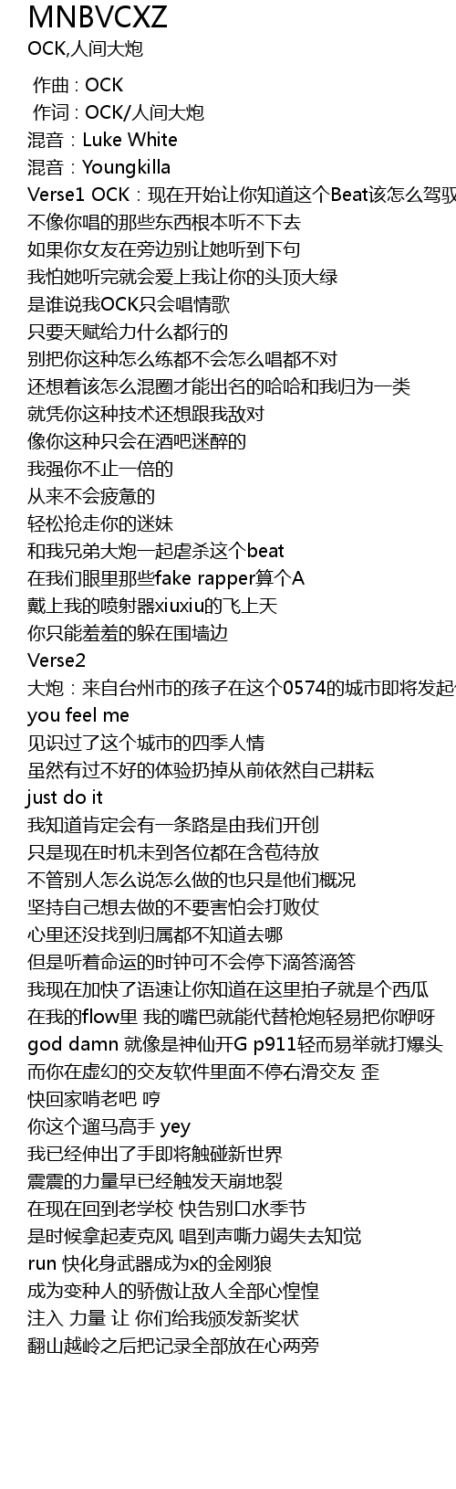 | [00:00.028] | 作词 : OCK/人间大炮 |