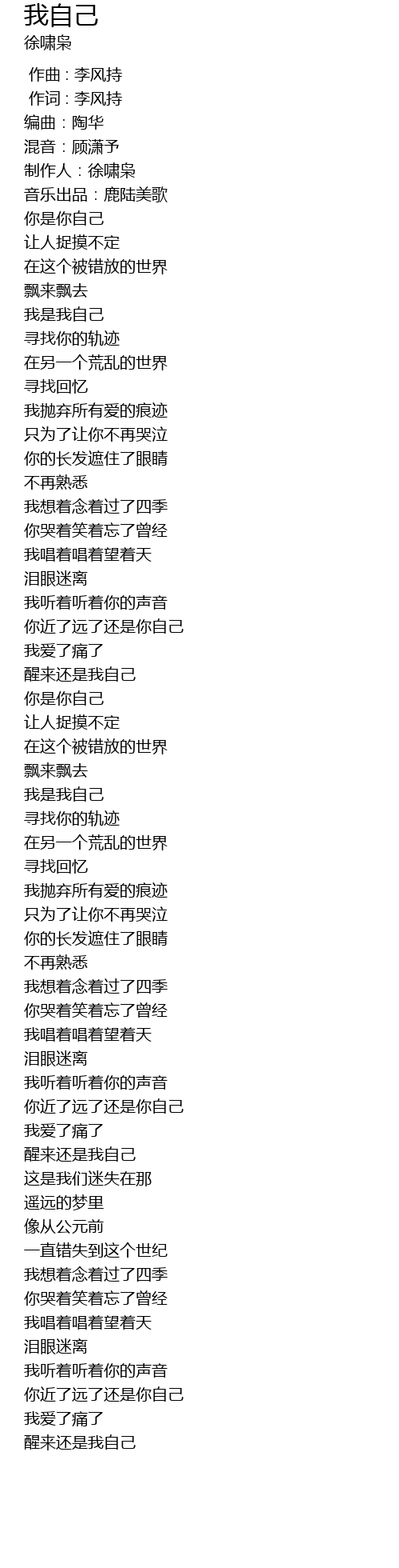 | [01:43.54] | xǐng lái huán shì wǒ zì jǐ |