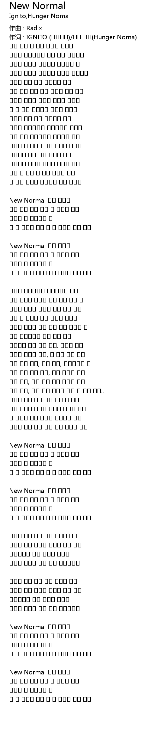 | 作词 : IGNITO (이그니토)/헝거 노마(Hunger Noma) | |