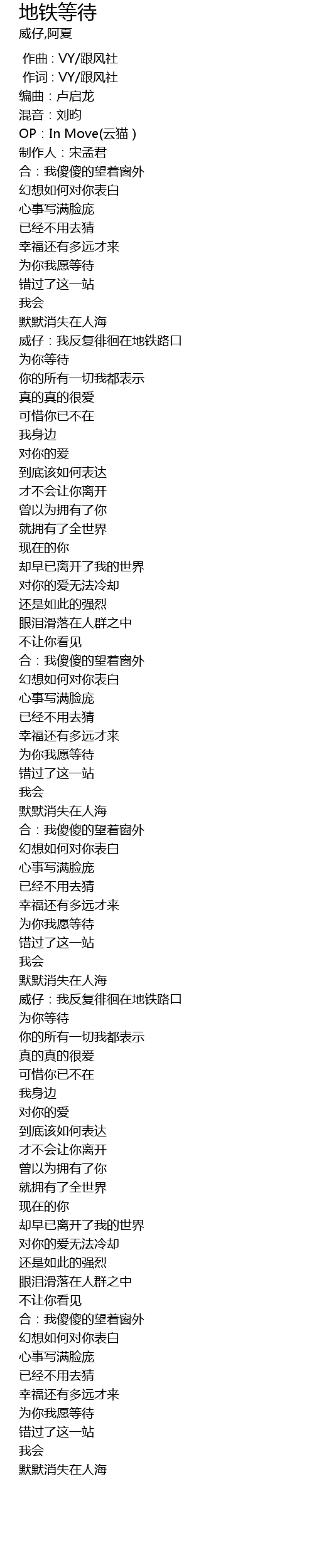 | [02:24.06] | 威仔:我反复徘徊在地铁路口 |