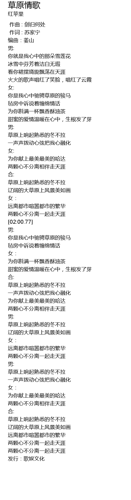 | [01:16.39] | 草原上响起熟悉的冬不拉 |