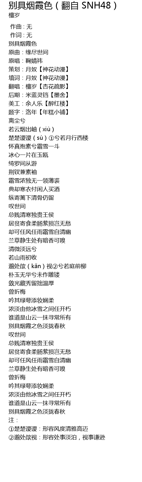| [00:09.932] | 翻唱:檀岁【杏花疏影】 |