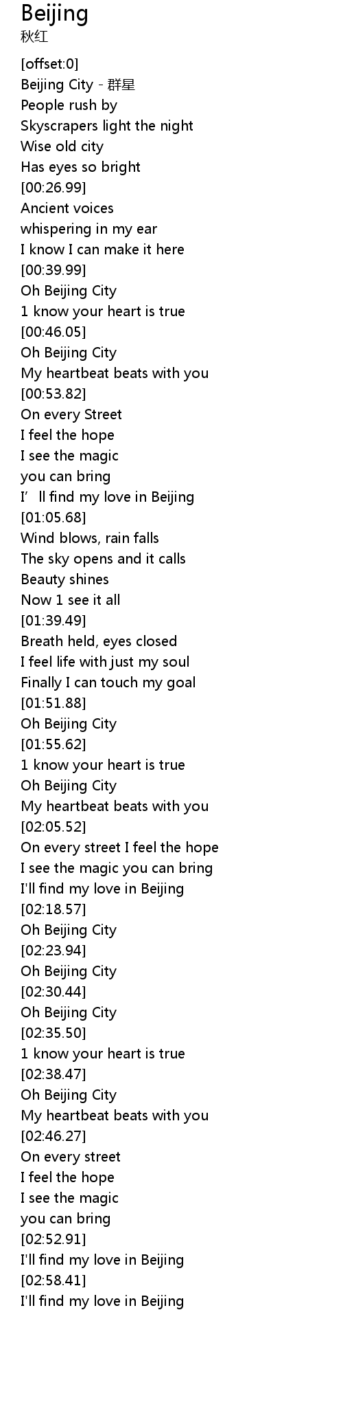 | [01:58.89] | Oh Beijing City |
