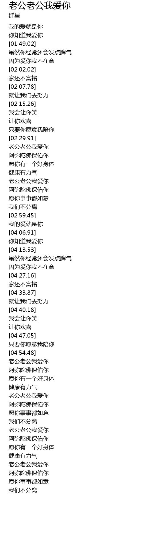 | [02:33.63] | lǎo gōng lǎo gōng wǒ ài nǐ |