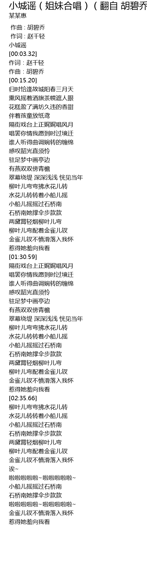 | [00:00.00] | 小城谣 |