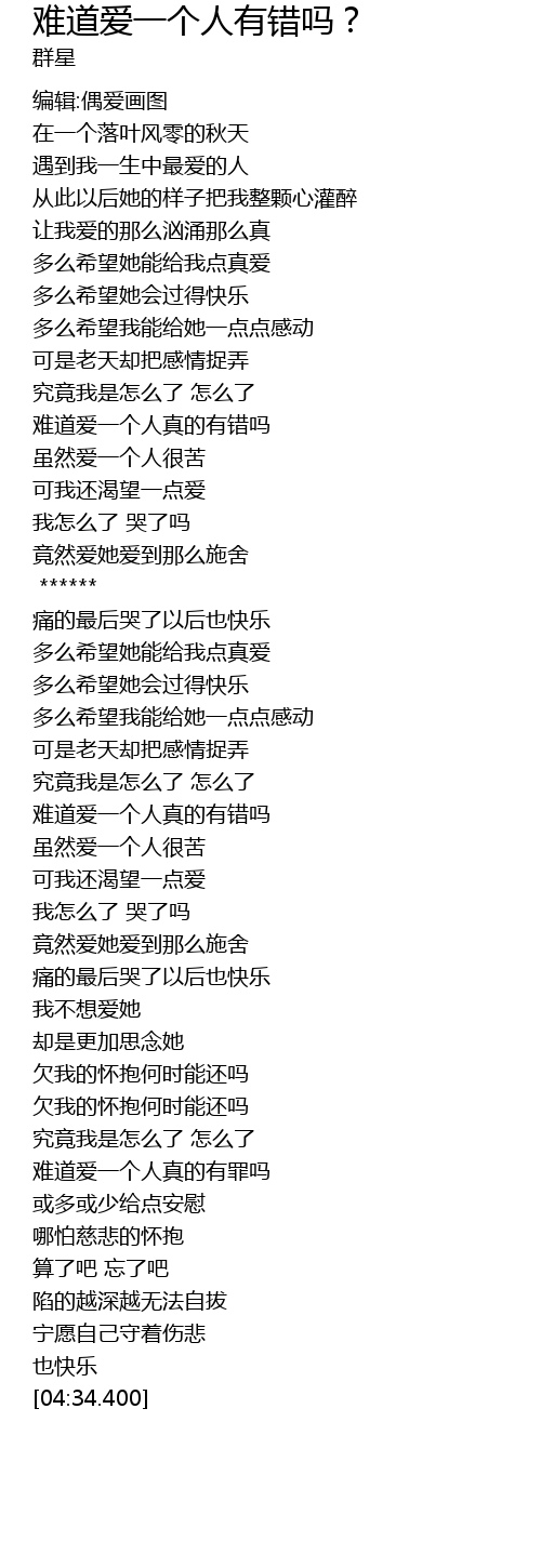 | [01:36.530] | 难道爱一个人真的有错吗 |