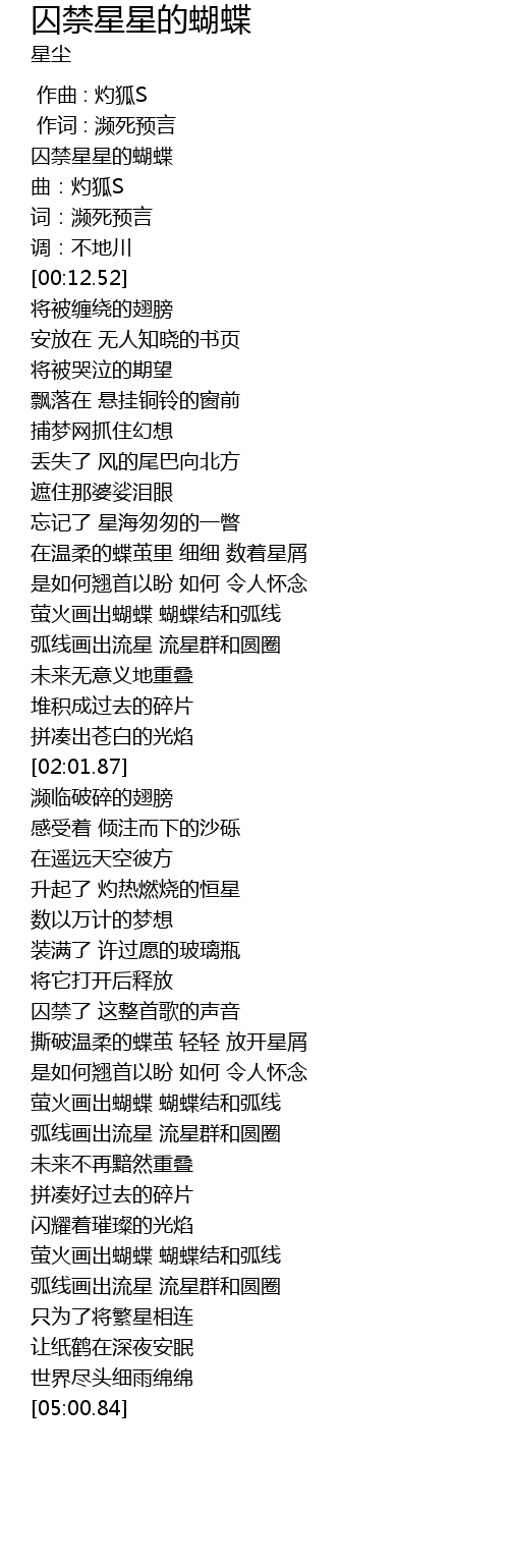 | [00:01.20] | 囚禁星星的蝴蝶 |