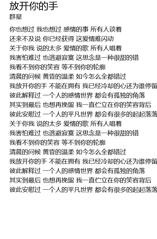 | 我放开你的手 不能在拥有 我已经冷却的心还为谁停留 | |