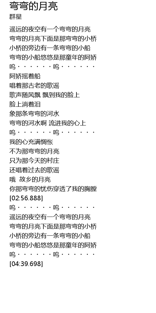 | [03:37.678] | 弯弯的月亮下面是那弯弯的小桥 |