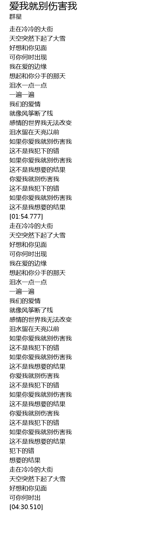| [01:45.777] | 如果你爱我就别伤害我 |