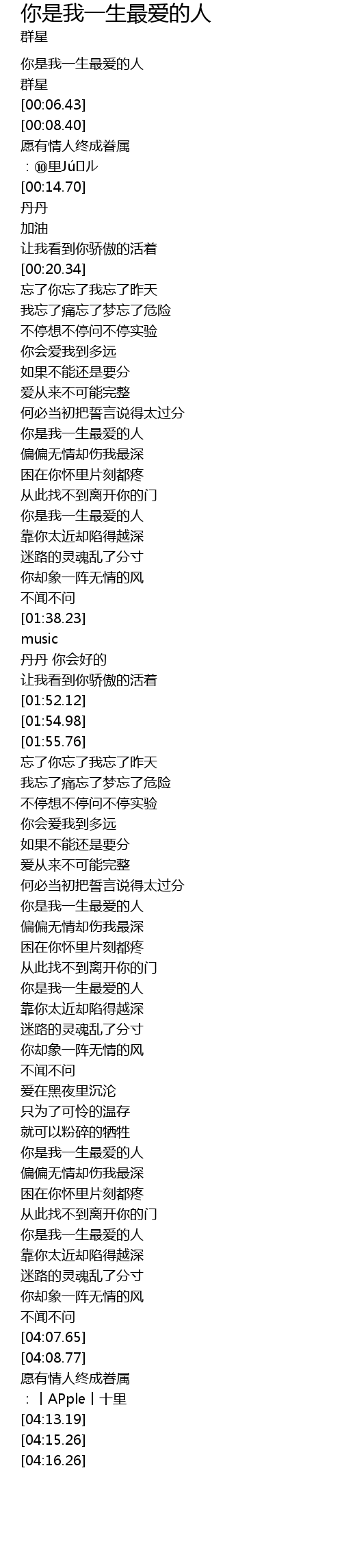 | [00:01.91] | 你是我一生最爱的人 |