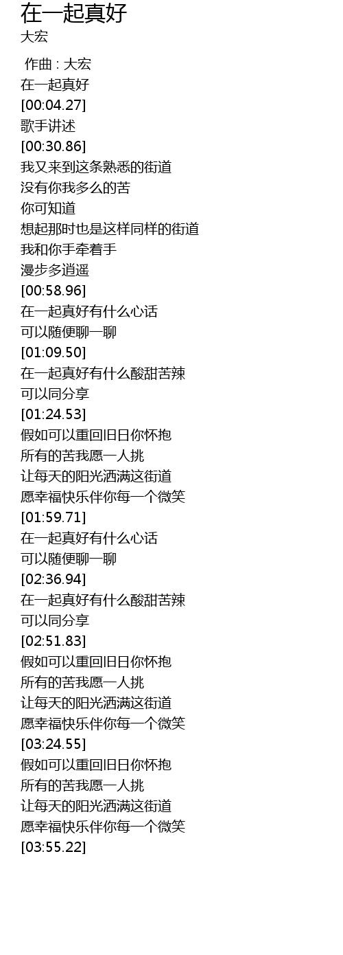 | [00:00.96] | zài yì qǐ zhēn hǎo |