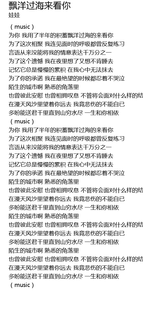 | [00:24.0] | wèi nǐ wǒ yòng le bàn nián de jī xù piāo yáng guò hǎi de lái kàn nǐ |