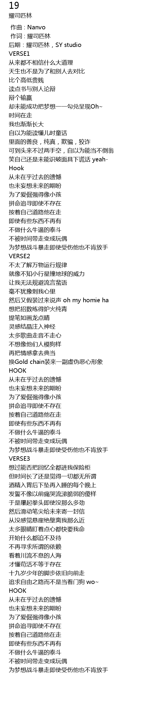 | [02:41.379] | 十九岁少年的脚步依旧向前走 |