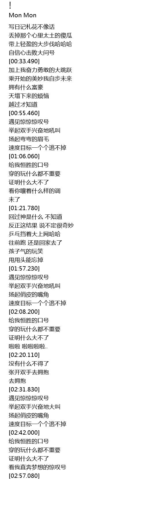 | [02:31.980] | 遇见惊惊惊叹号 |