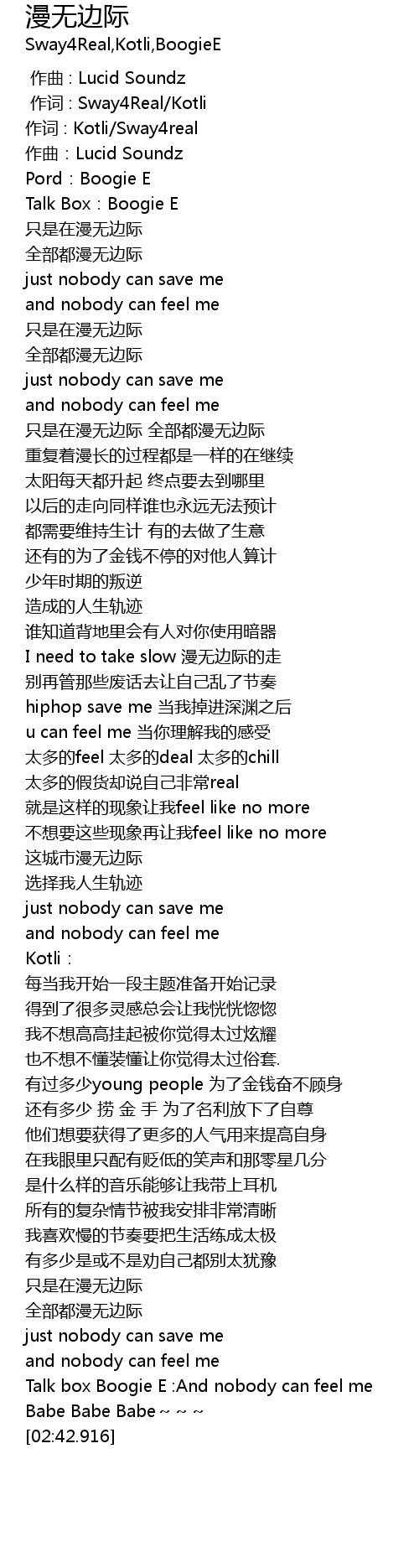 | [00:01.000] | 作词 : Sway4Real/Kotli |