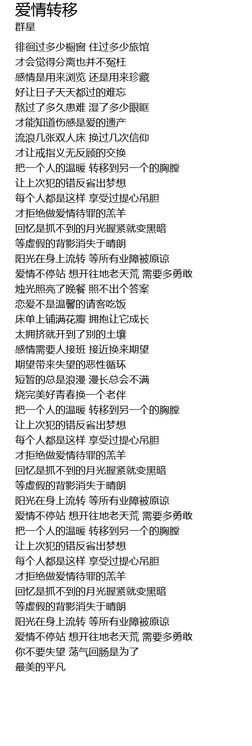 | [03:04.50] | 把一个人的温暖 转移到另一个的胸膛 |