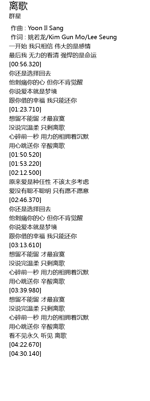 | [00:01.00] | 作词 : 姚若龙/Kim Gun Mo/Lee Seung |