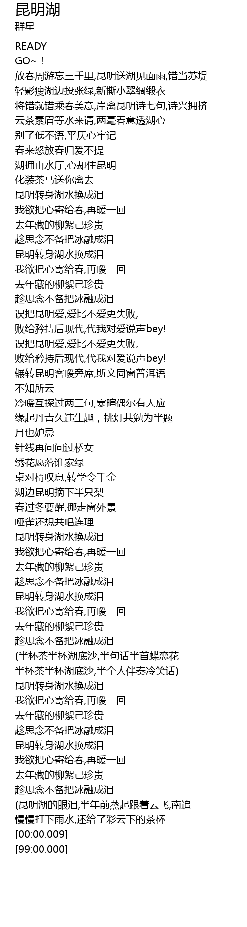 | [02:46.15] | kun ming zhuan shen hu shui huan cheng lei |