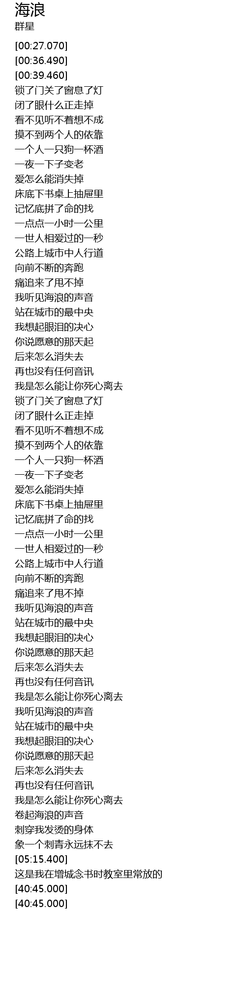 | [04:28.340] | wo ting jian hai lang de sheng yin |