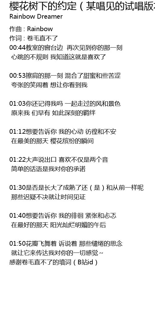 | Song | 樱花树下的约定(某唱见的试唱版本2) |