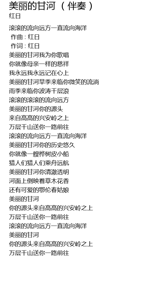 | [00:43.201] | 美丽的甘河我为你歌唱 |