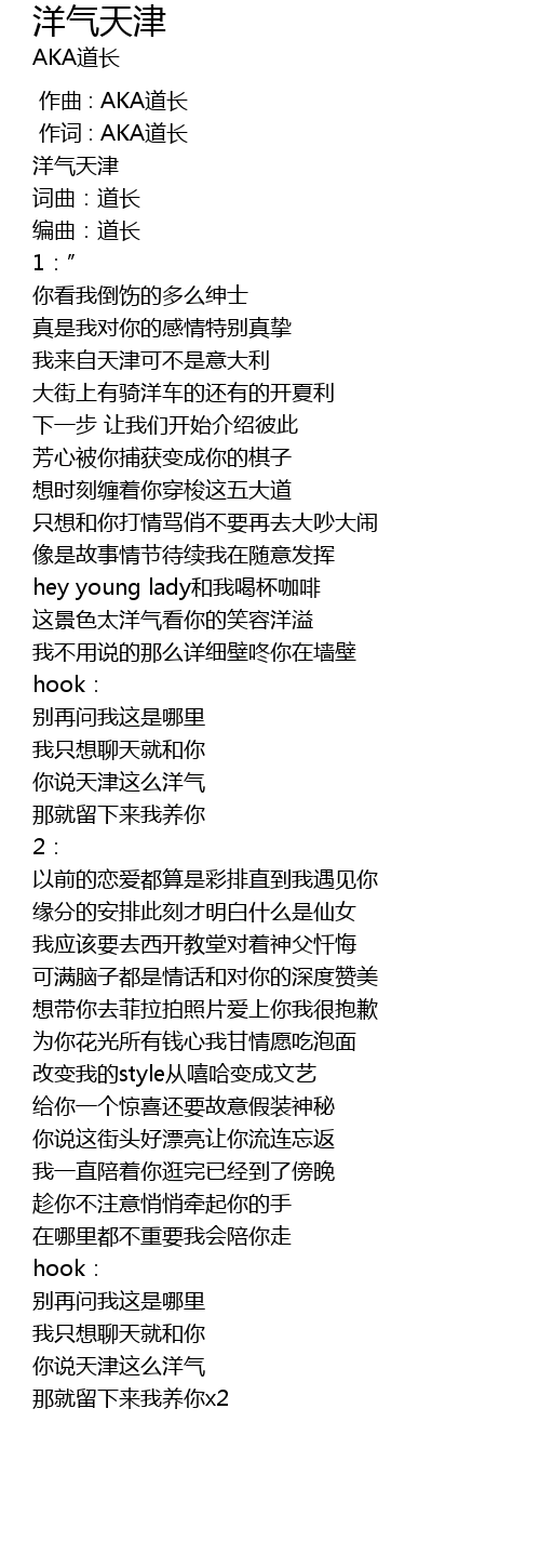 | [01:42.459] | 你说天津这么洋气 |