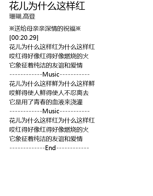 [02:06.51] 花儿为什么这样红为什么这样红