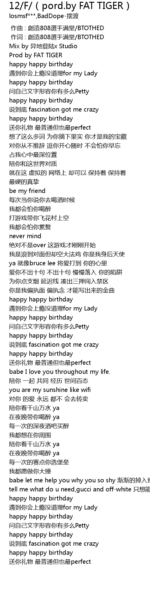 | [00:01.000] | zuò cí : chuàng zào 808 xuǎn shǒu mǎn táng BTOTHED |
