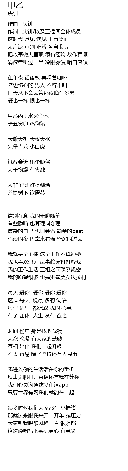 | 作词 : 庆钊/以及直播间全体成员 | |
