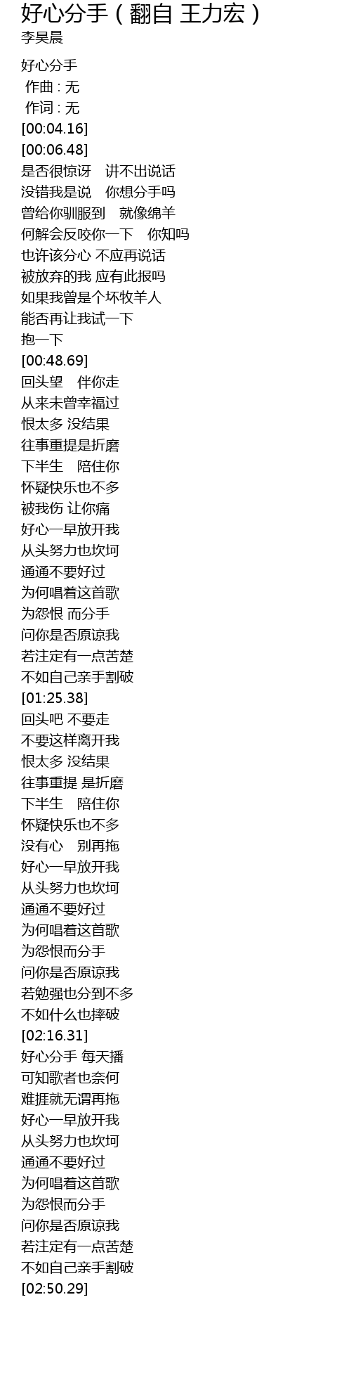 | [02:28.46] | hǎo xīn yī zǎo fàng kāi wǒ |