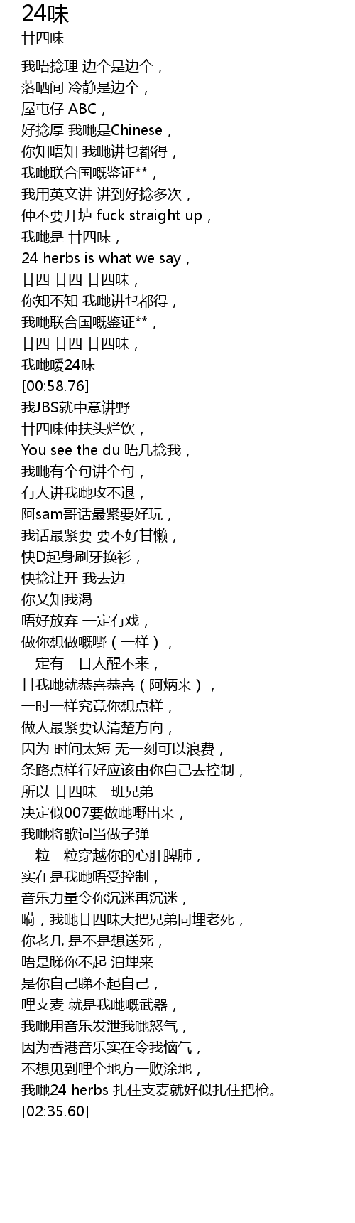 | [01:55.17] | 所以 廿四味一班兄弟 |