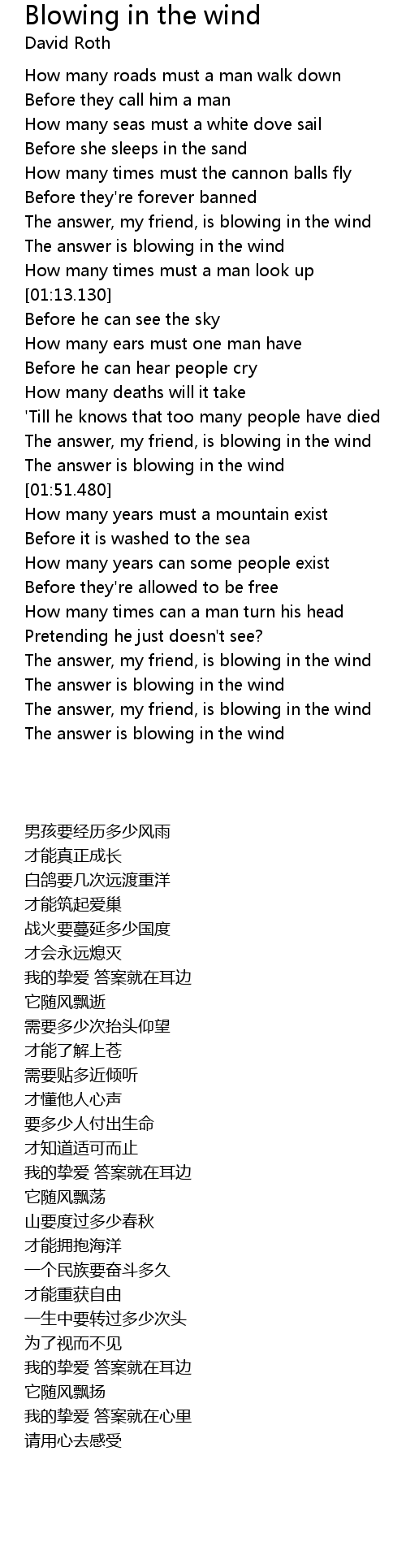 The answer is blowing in the wind |
