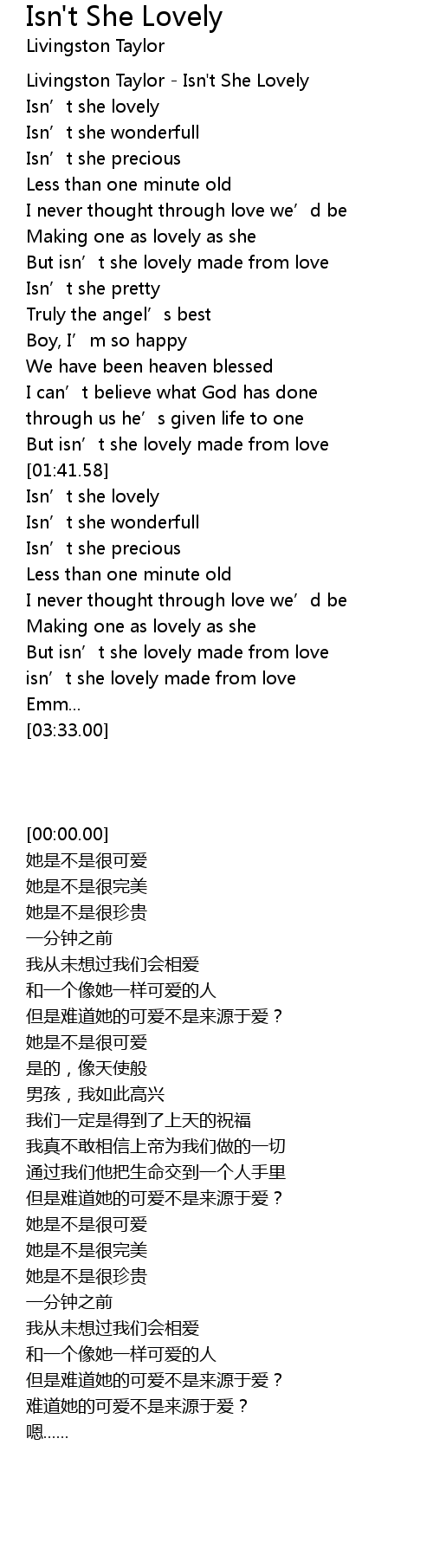 | [00:00.00] | Livingston Taylor - Isn't She Lovely |