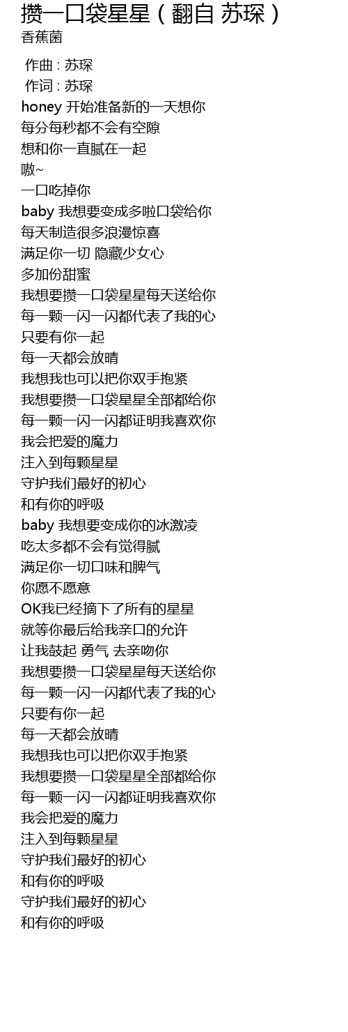 | [00:54.935] | 我想要攒一口袋星星每天送给你 |