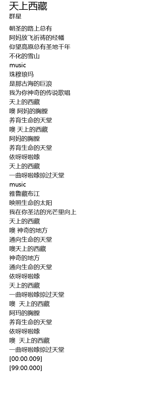 | [01:06.96] | 天上的西藏 |