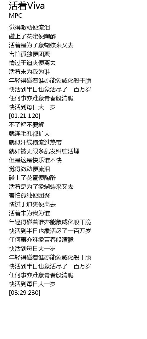 | [03:23.920] | 快活到每日大一岁 |