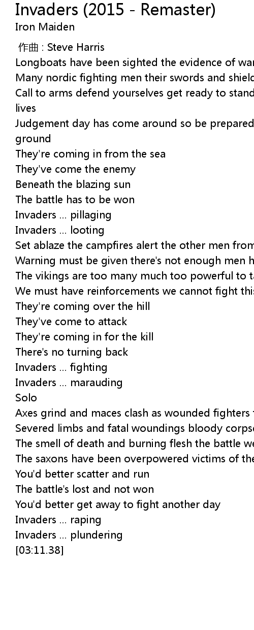 | [00:30.46] | Longboats have been sighted the evidence of war has begun |