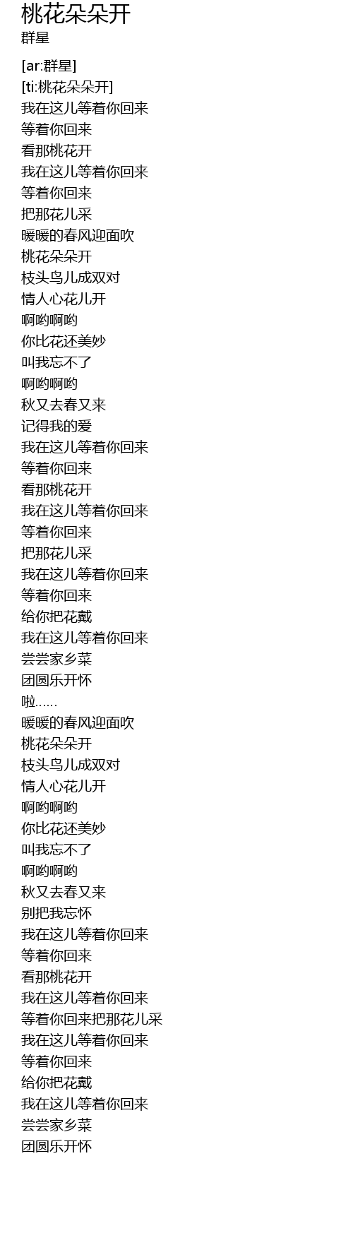 | [00:50.74] | táo huā duǒ duǒ kāi |