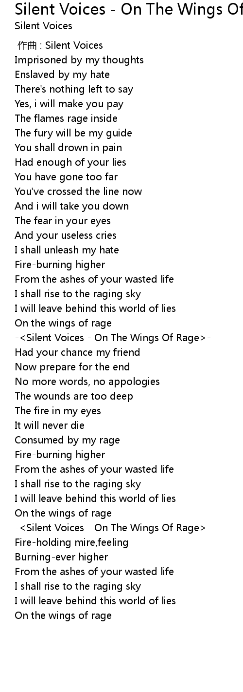 | [03:30.00] | Silent Voices On The Wings Of Rage |