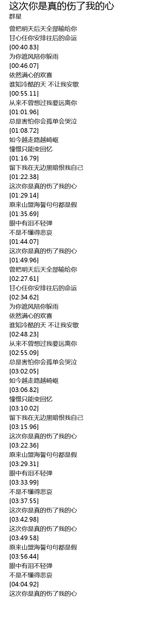 | [04:05.43] | 这次你是真的伤了我的心 |