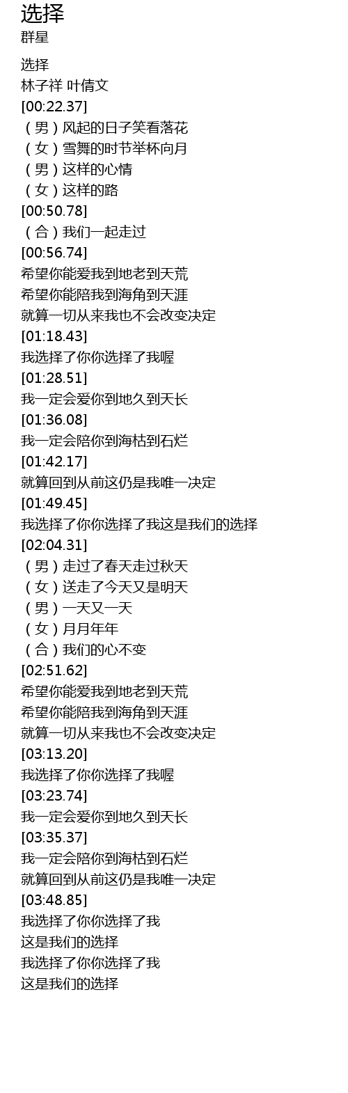 | [01:50.19] | 我选择了你你选择了我这是我们的选择 |