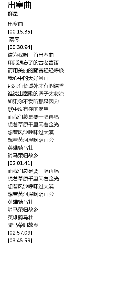 | [00:40.24] | 请为我唱一首出塞曲 |