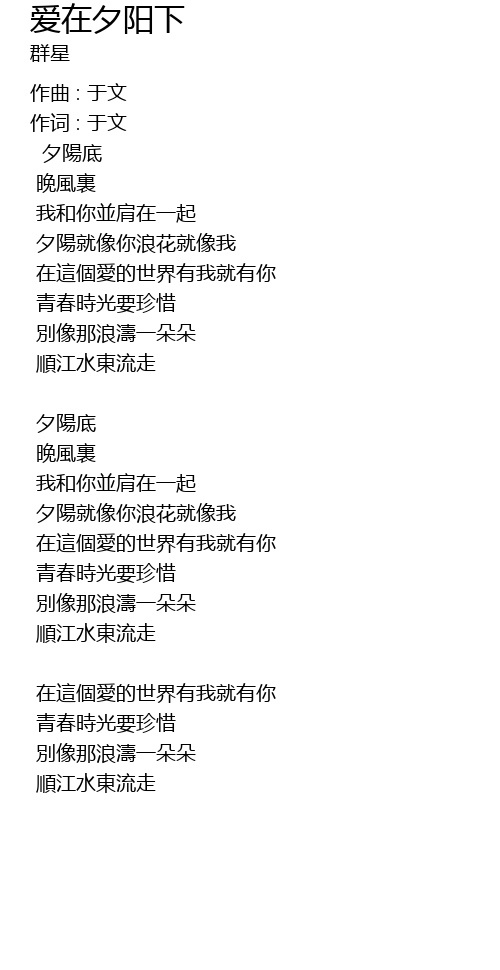 | xī yáng jiù xiàng nǐ làng huā jiù xiàng wǒ | |