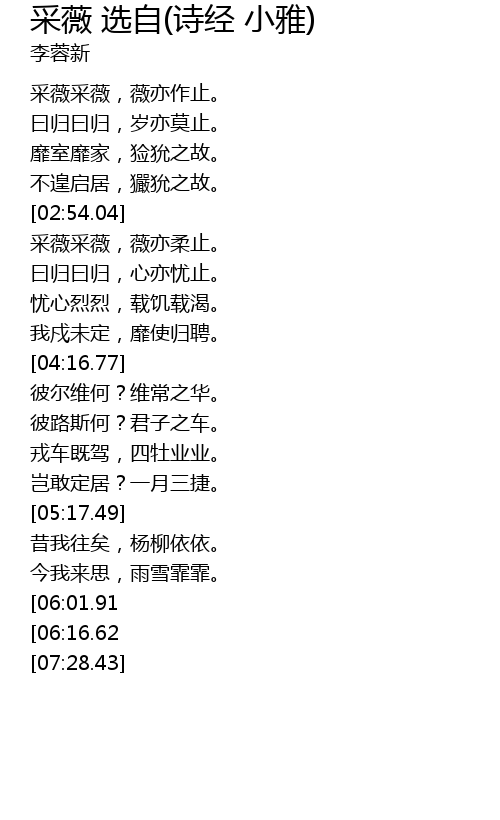 | [02:59.02] | 采薇采薇,薇亦柔止。 |
