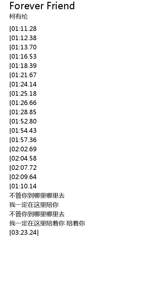 | [02:35.47][02:04.58][01:44.32][01:00.86] | forever 朋友 oh yeah |