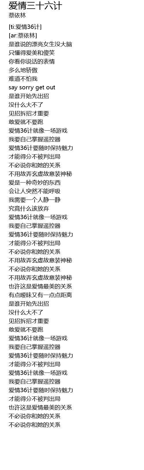 | [00:43.617] | 爱情36计就像一场游戏 |