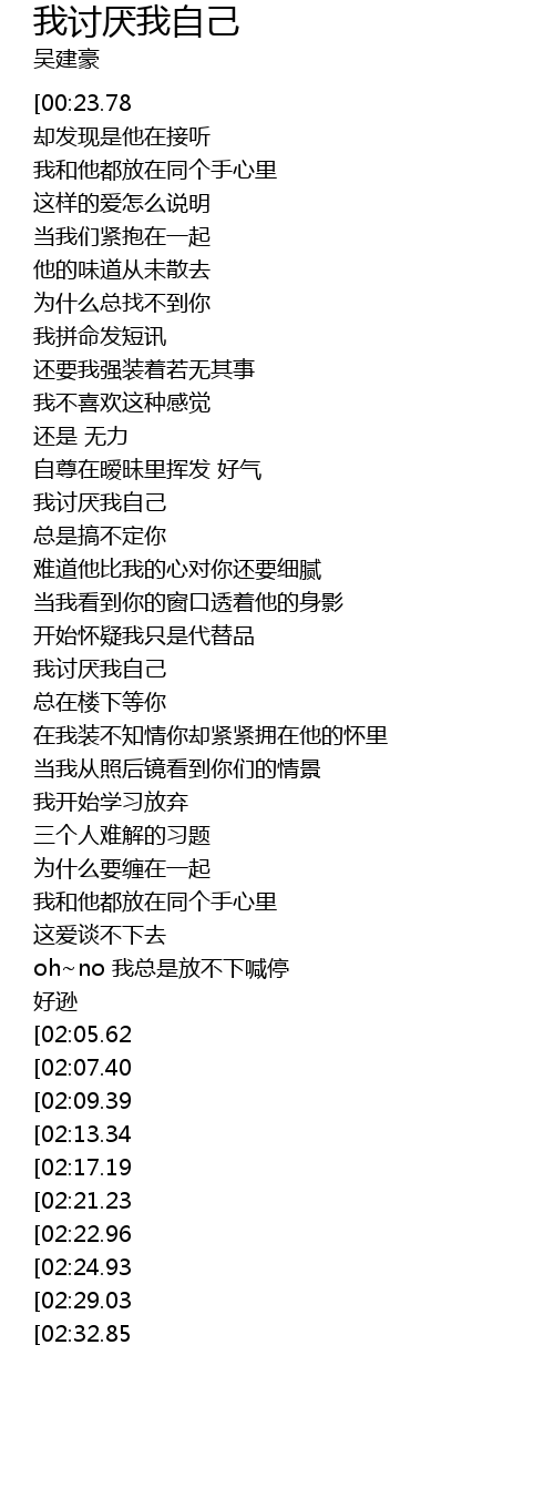 | [02:38.93][02:05.62] | 我讨厌我自己 |