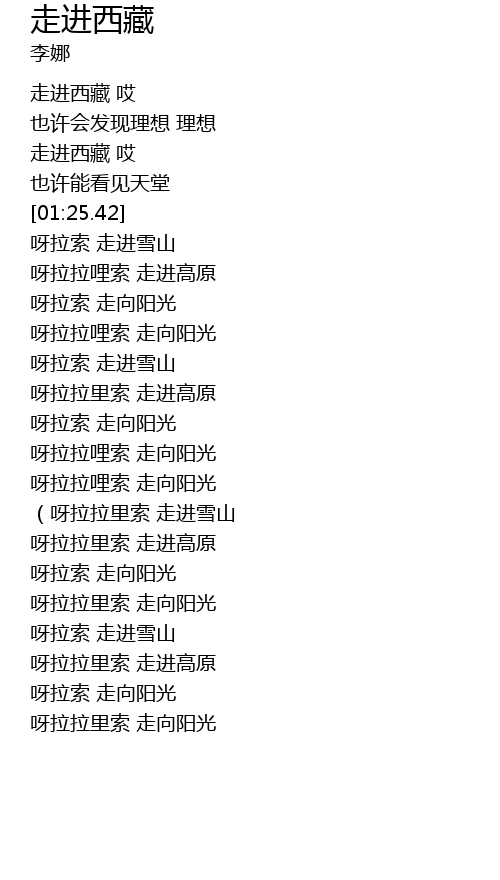 [02:22.91] ya lā lā lǐ suǒ zǒu jìn gāo yuán