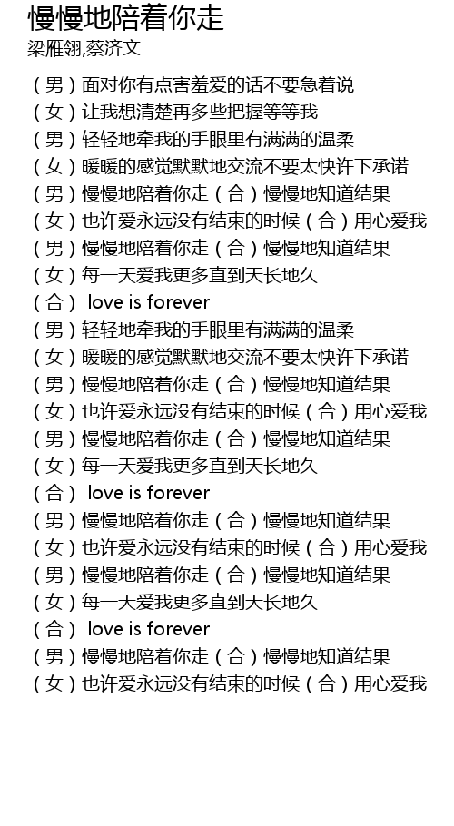 | [04:11.370] | (男)慢慢地陪着你走(合)慢慢地知道结果 |